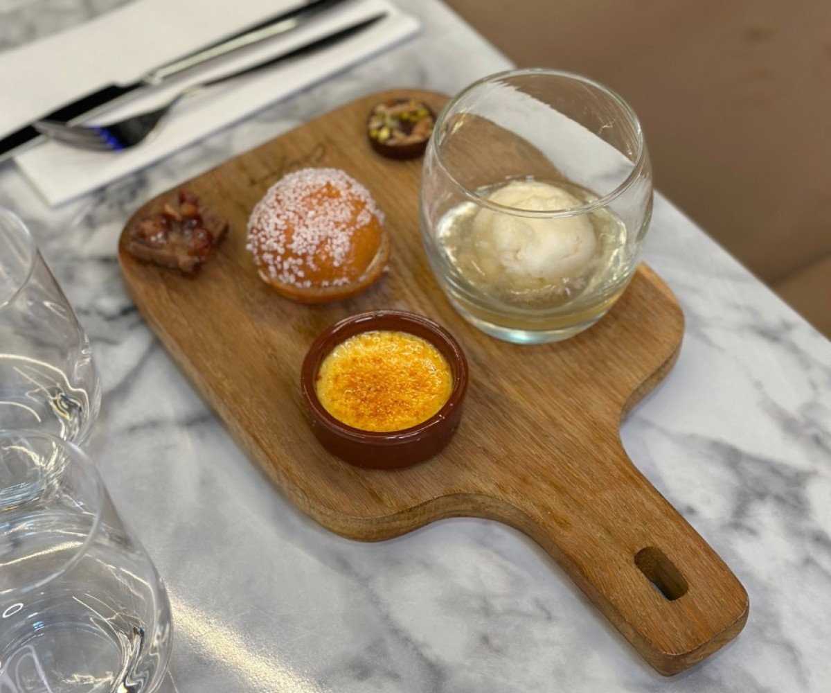 Oeuf cuit à 64°C, velouté de patate douce, chips de coppa et croûtons dorés.