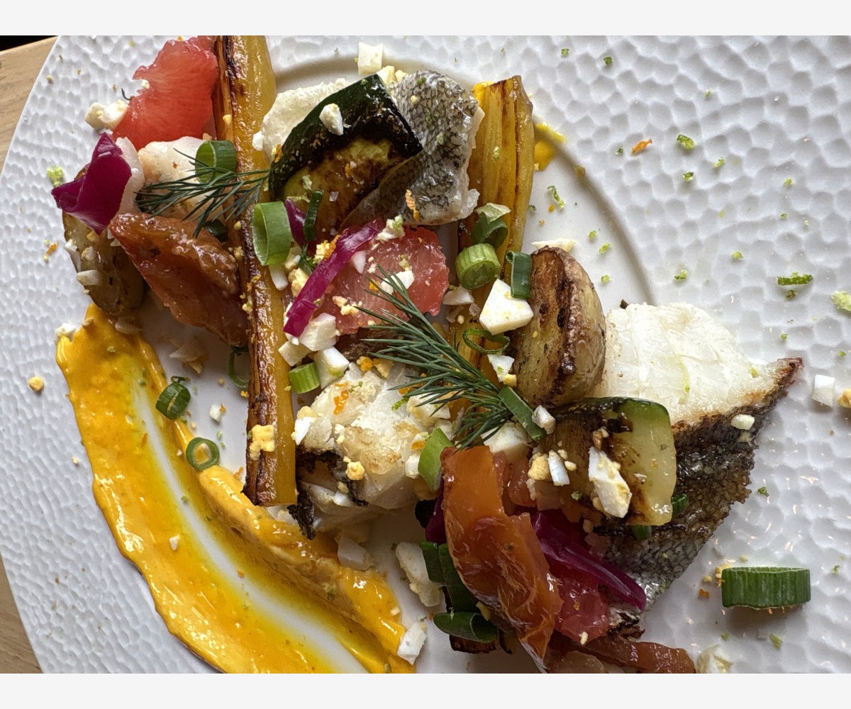 Poisson à la plancha , aïoli, légumes croquants, oeuf