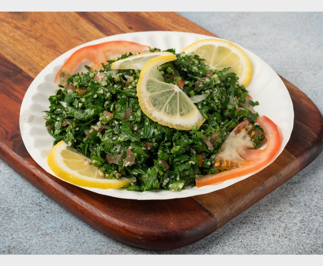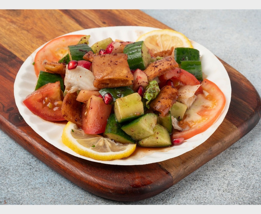 Green salad, Baba gannoush,Fattosh, Hummus,Tahini,Tabboleh