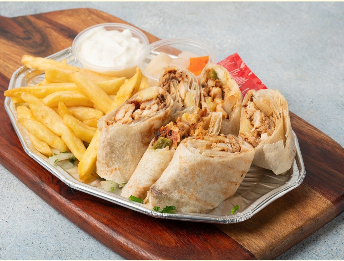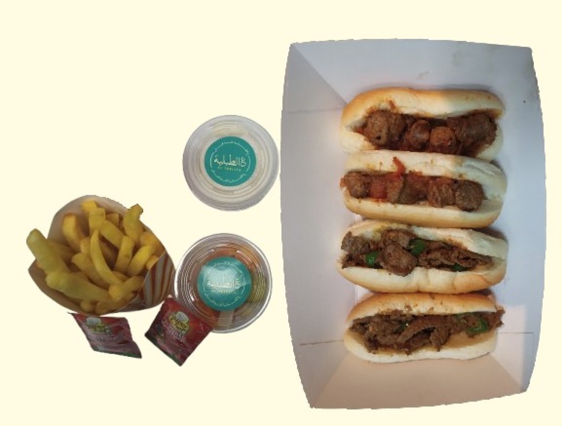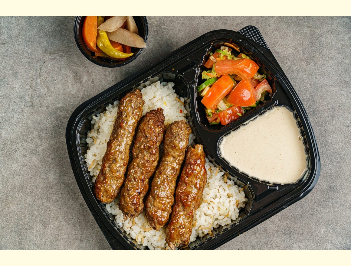 Kebab kofta tarb shish tawookwith French fries +tahina+Green salad +Breads +Pickles
