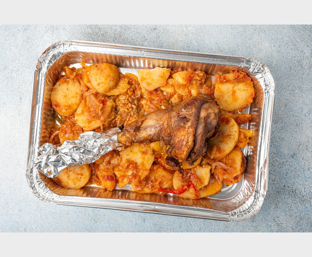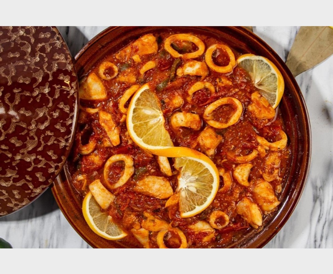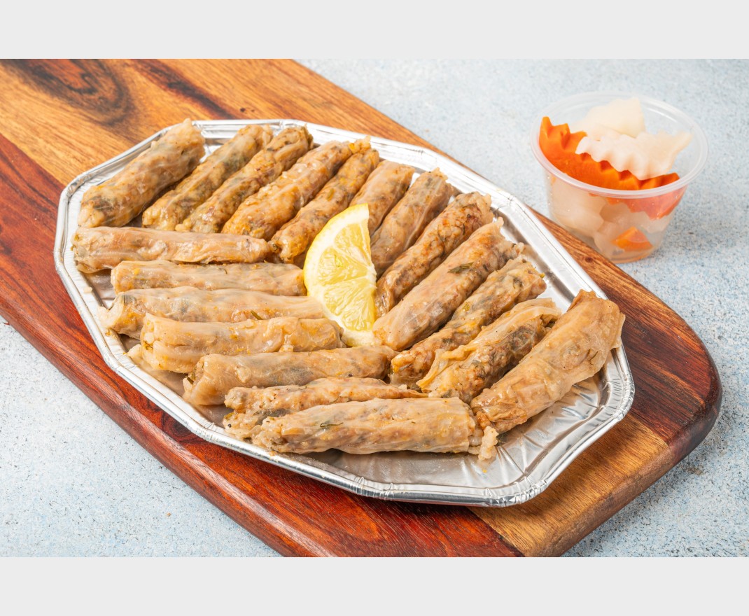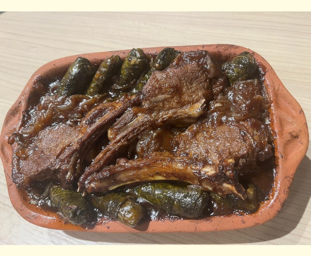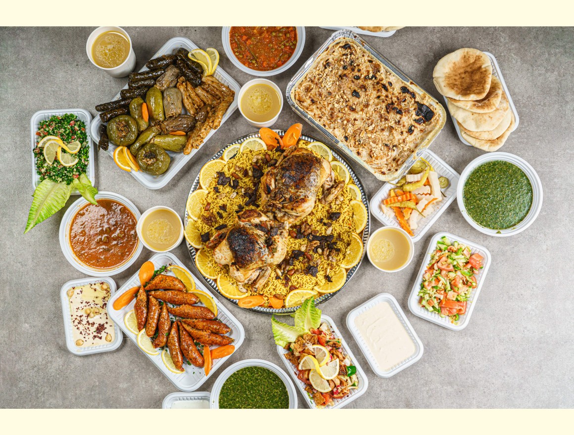 Main course: Half chicken grilled or roasts served with Molokhia or mashed potato, Okra with veal meat Tajin,Mixed vegetable with meat Tajin, Grilled kofta 5 pieces,Mix grill kofta 3 pieces with shish tawook 2 pieces, Vine leaves with akawi Tajin, Fattah with fried veal meat,Fattah with kaware
