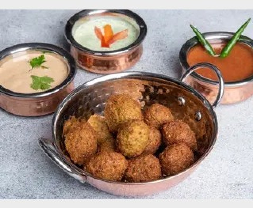 Hot mezzeh: 2 pieces samosa, 2 pieces mombar pops