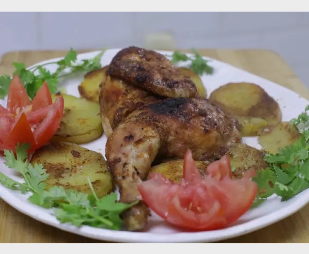 Roasted half Chicken With Potato In The Oven om-ahmed