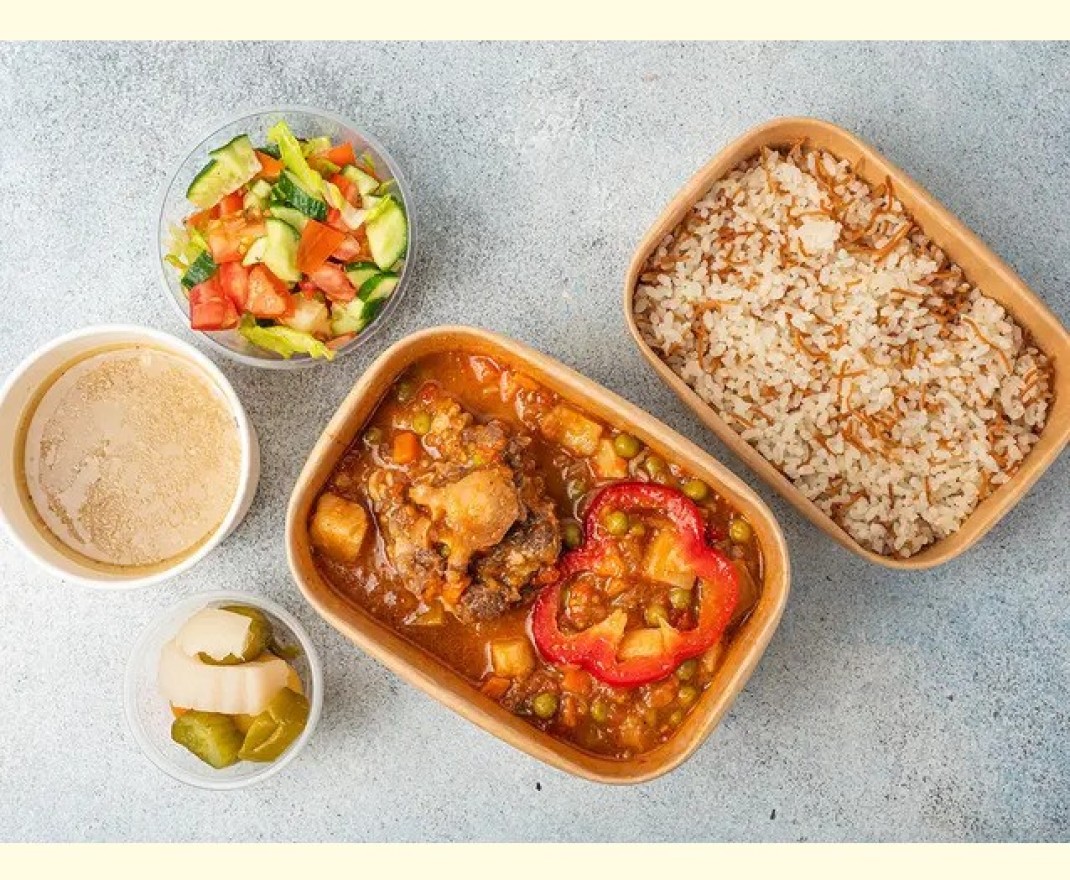 Side course: Vermicelli rice,Rice with nuts,White rice,Mixed mahshi,Bechamel pasta,Negresco