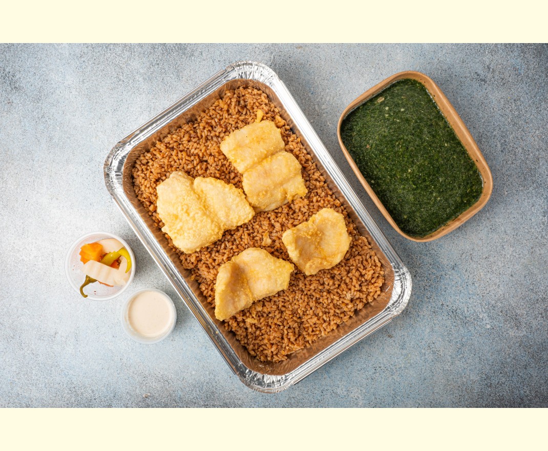 Fried Fish Fillet And Molokhia With Shrimp - Bahari