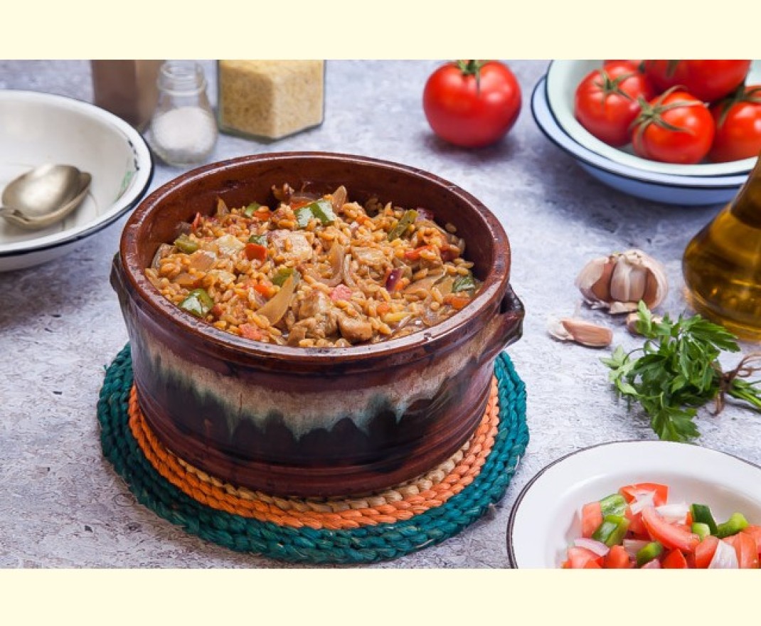 Okra Tajin With Veal And Vermicelli Rice Bayti
