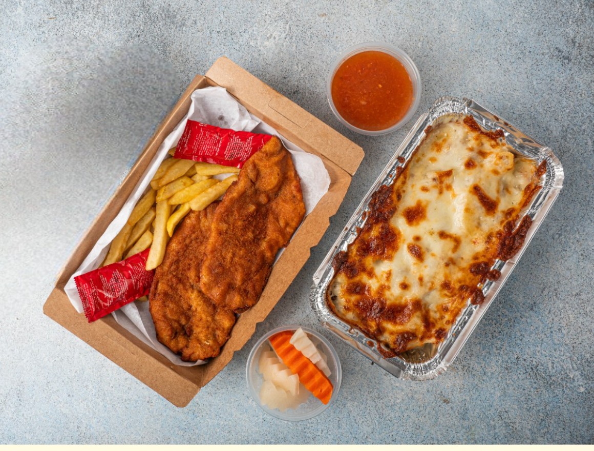 Chicken Pane Meal & Bechamel Pasta With Minced Meat- Asfour of the East